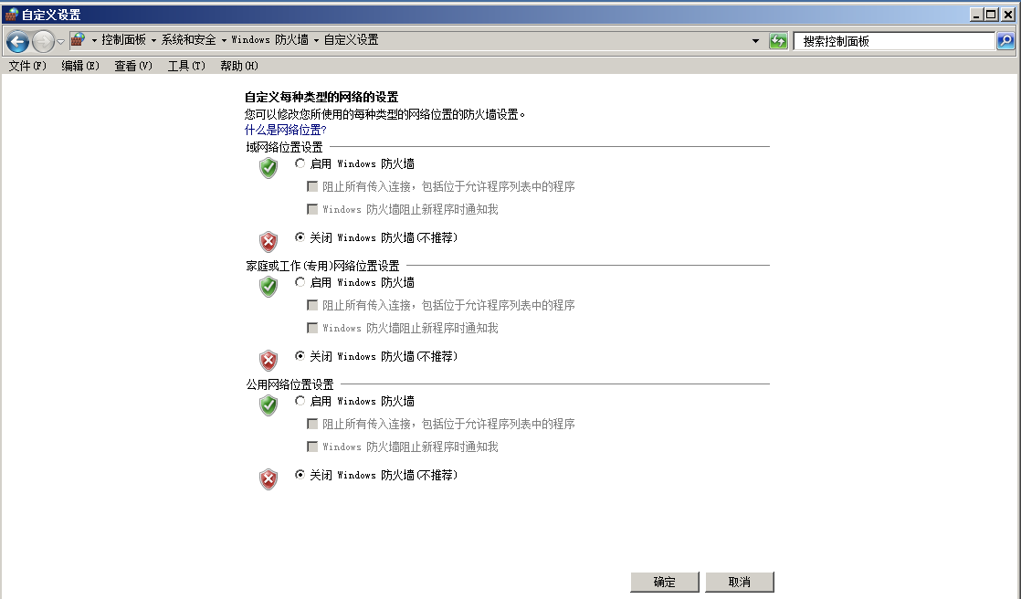 所以,从防护强度来讲,公用网络防护墙>家庭或工作网络>域网络,在关闭防火墙的时候可以按照这个顺序关闭,不需要一股脑全都关闭,有时候可能关掉公用网络的防火墙就可以了。