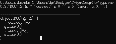 $obj_str='O:3:"BUU":2:{s:7:"correct";s:0:"";s:5:"input";s:0:"";}';