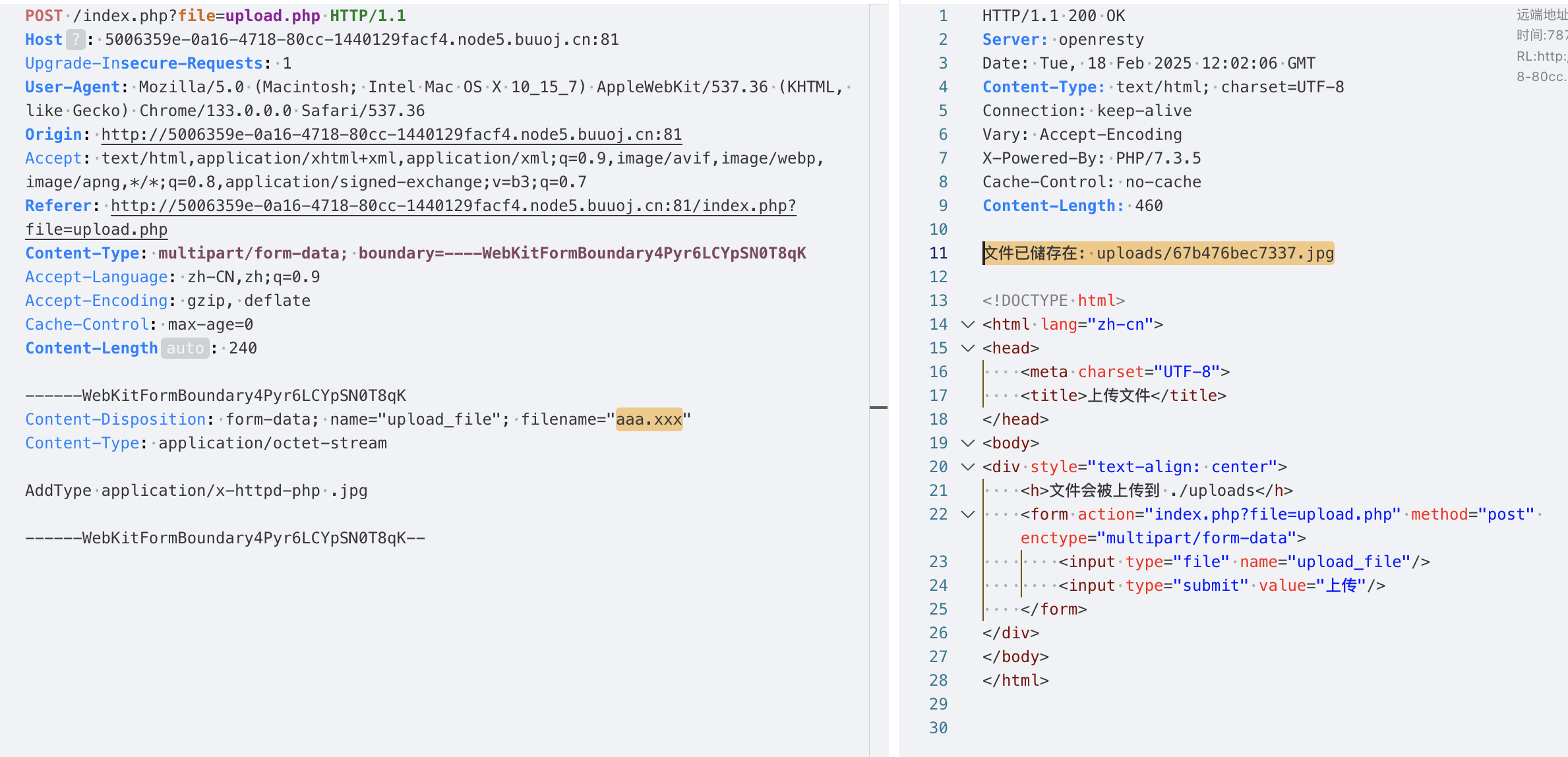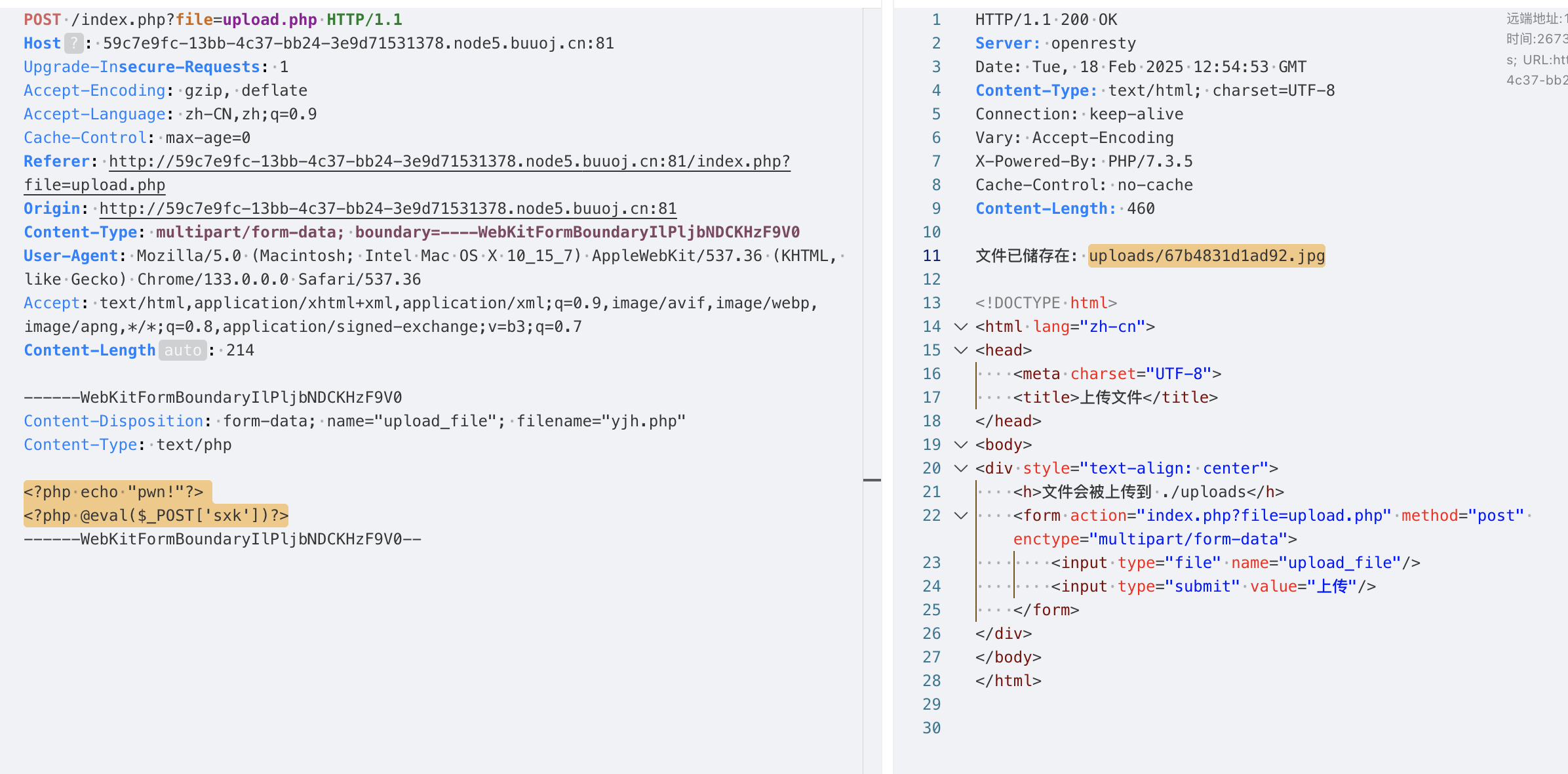 upload.php文件返回的内容和index.php?file=upload.php返回的内容相同。