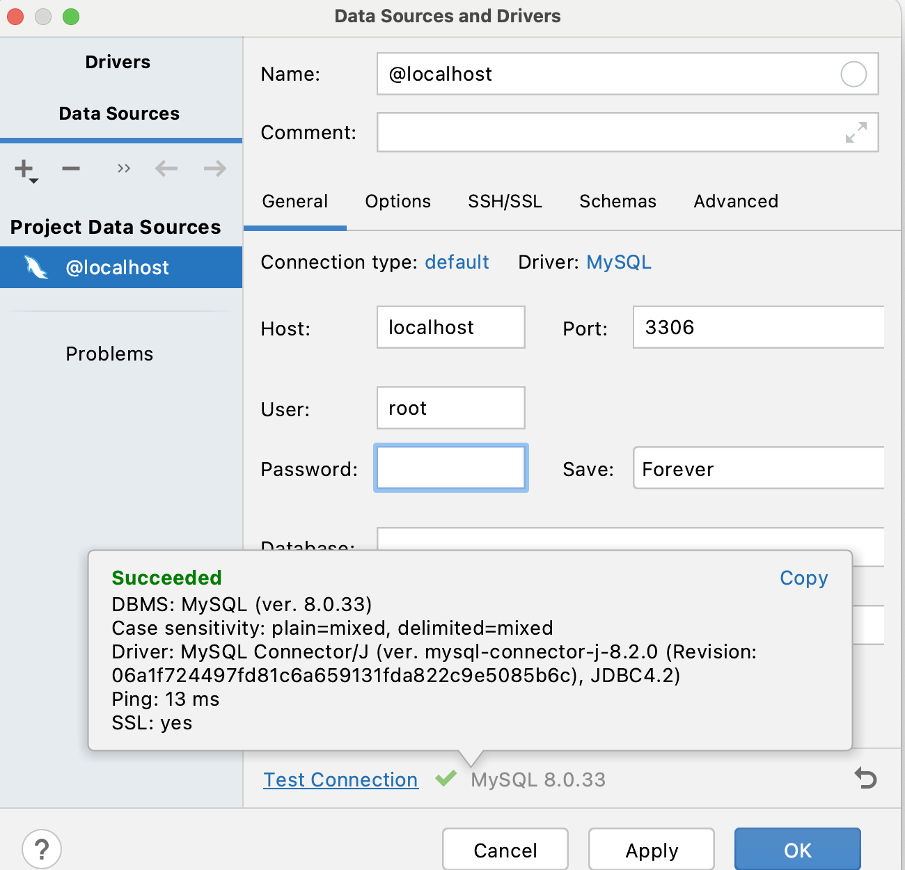 点击测试连接,成功连接。