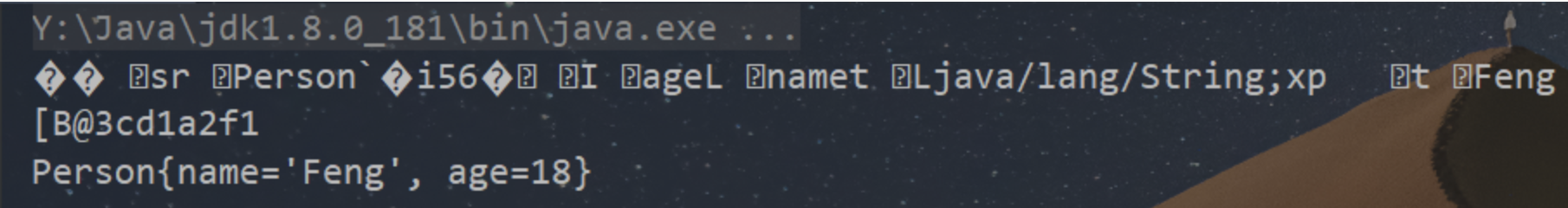 //System.out.println("反序列化之前的值:" + new String(bytes, 0, bytes.length) + "," + "序列化之后的值:" + o.toString());