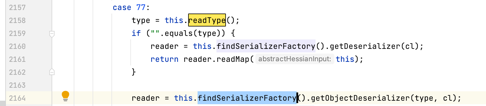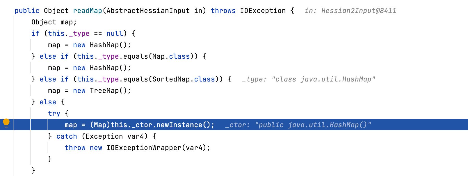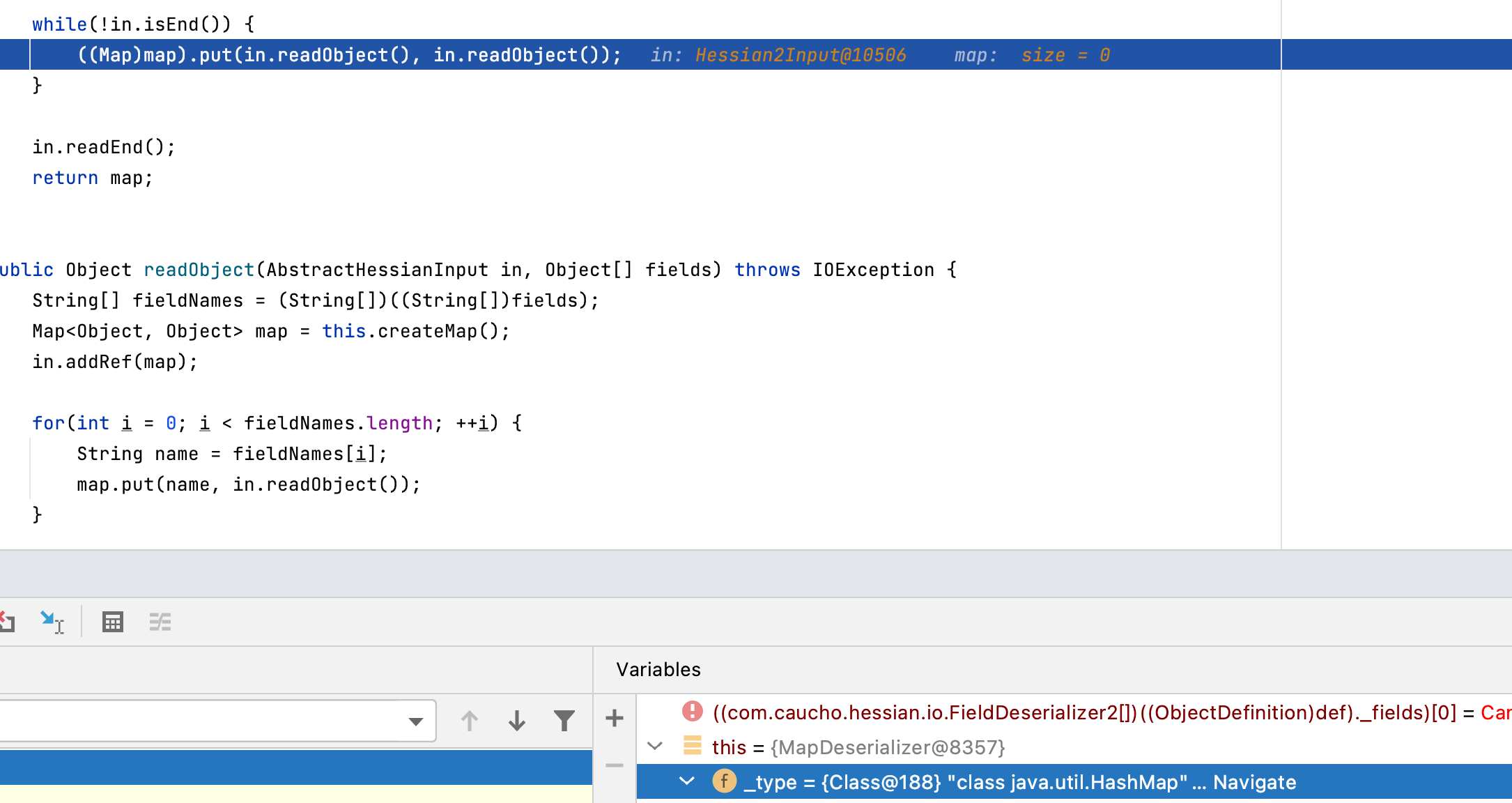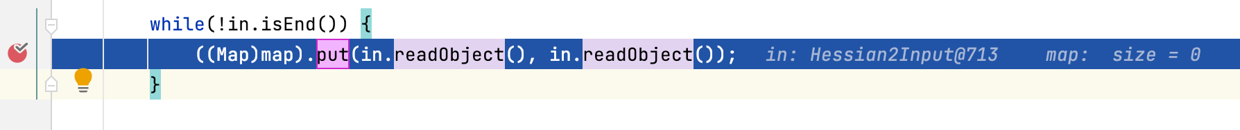 Object o = hessian2Input.readObject();