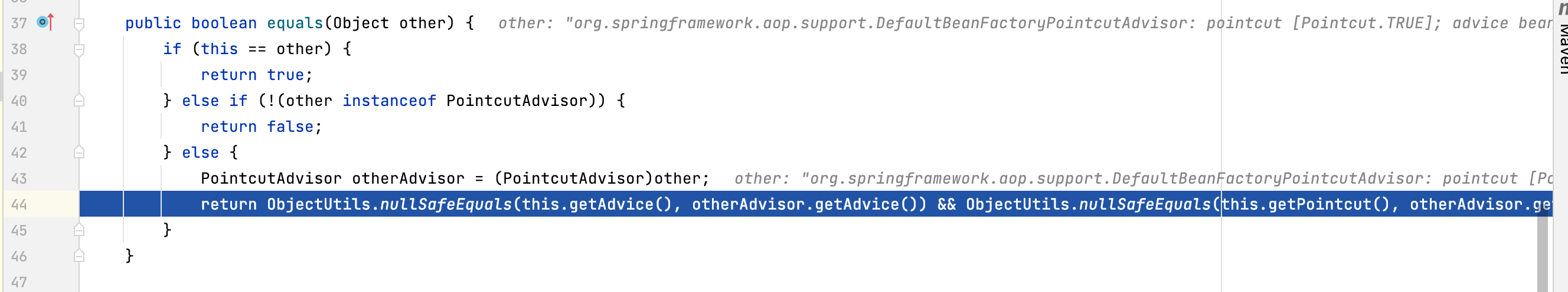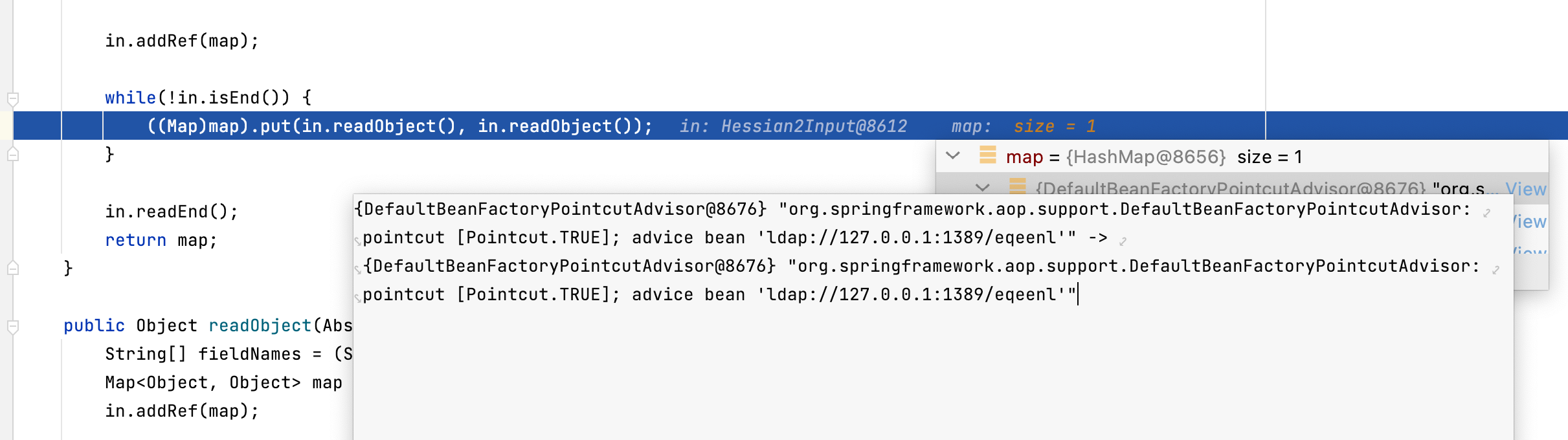 1)写hashmap时为什么会直接跳转到AbstractPointcutAdvisor.class文件。=>Equals方法触发