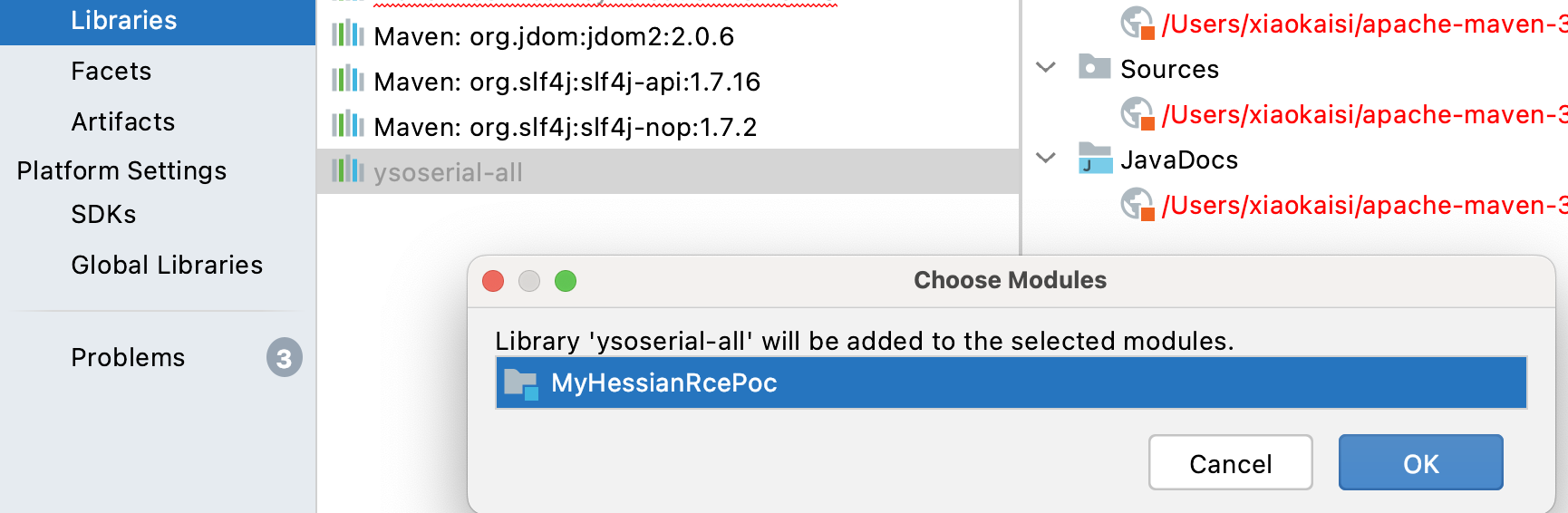 然后在Project Structure中的Libraries中新建java库,选择这个这个文件。