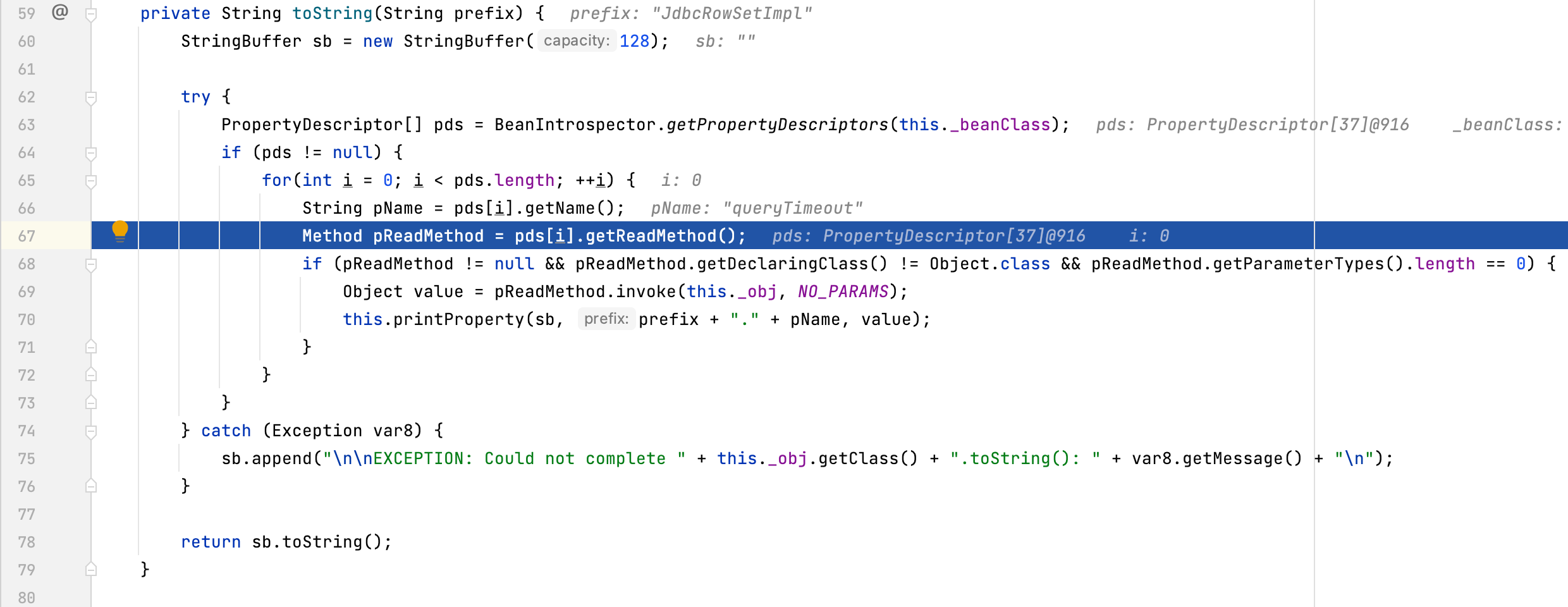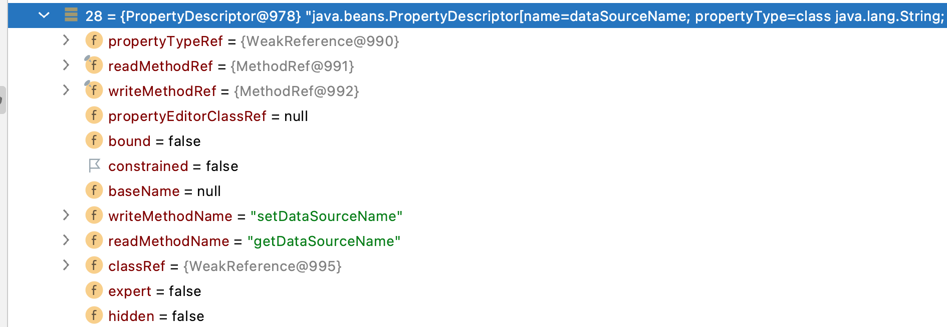 pds数组中保存的是JdbcRowSetImpl类的所有属性,共37个。