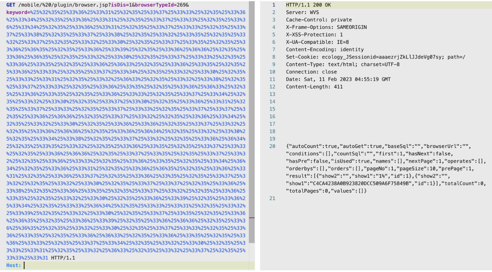 泛微OA E-Cology browser.jsp 存在SQL注入漏洞,攻击者通过漏洞可以获取数据库敏感信息,进一步进行攻击。
