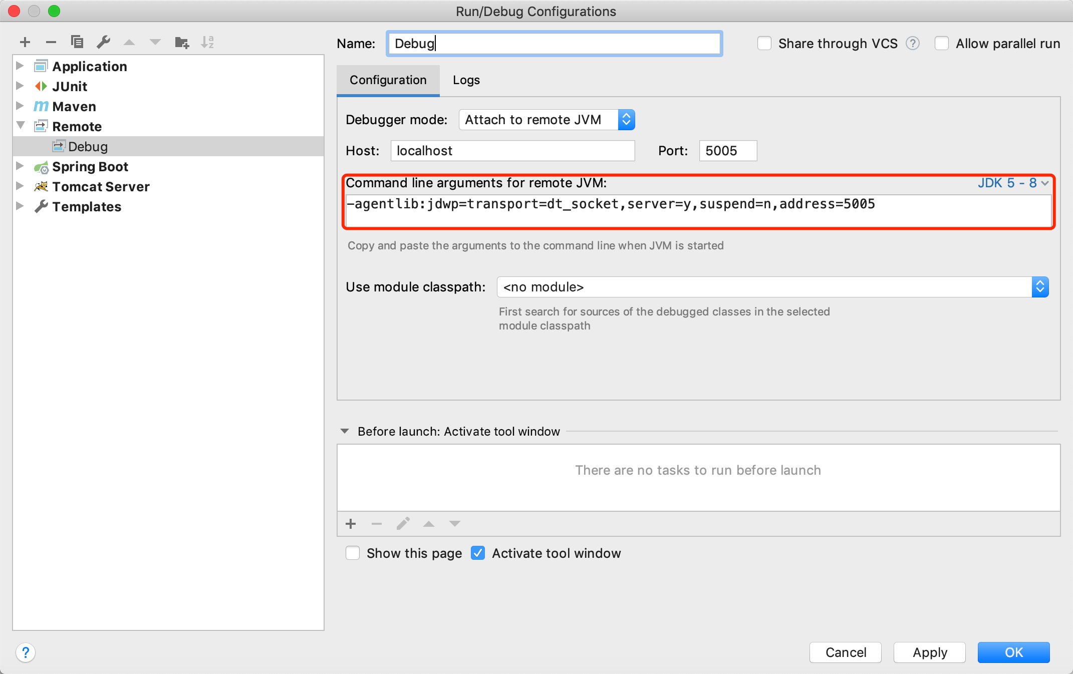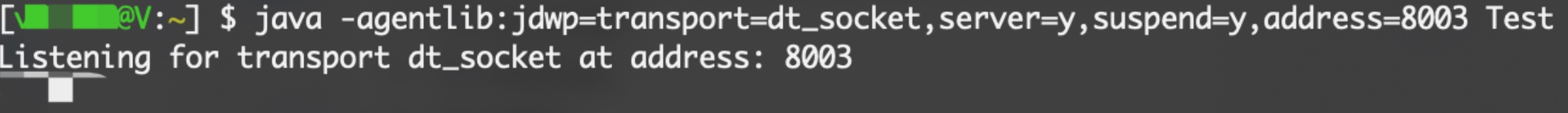 java -agentlib:jdwp=transport=dt_socket,server=y,suspend=y,address=*:8003 Test
