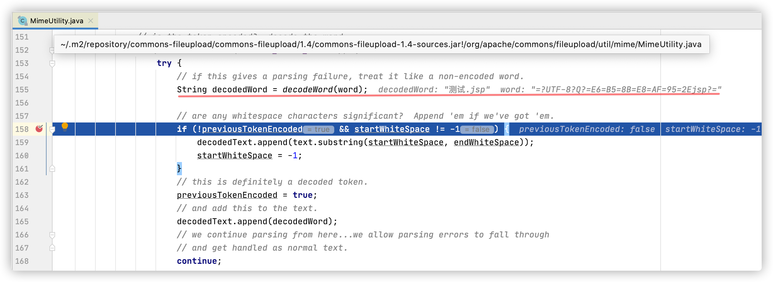 编码处理类:org.apache.commons.fileupload.util.mime.MimeUtility#decodeText