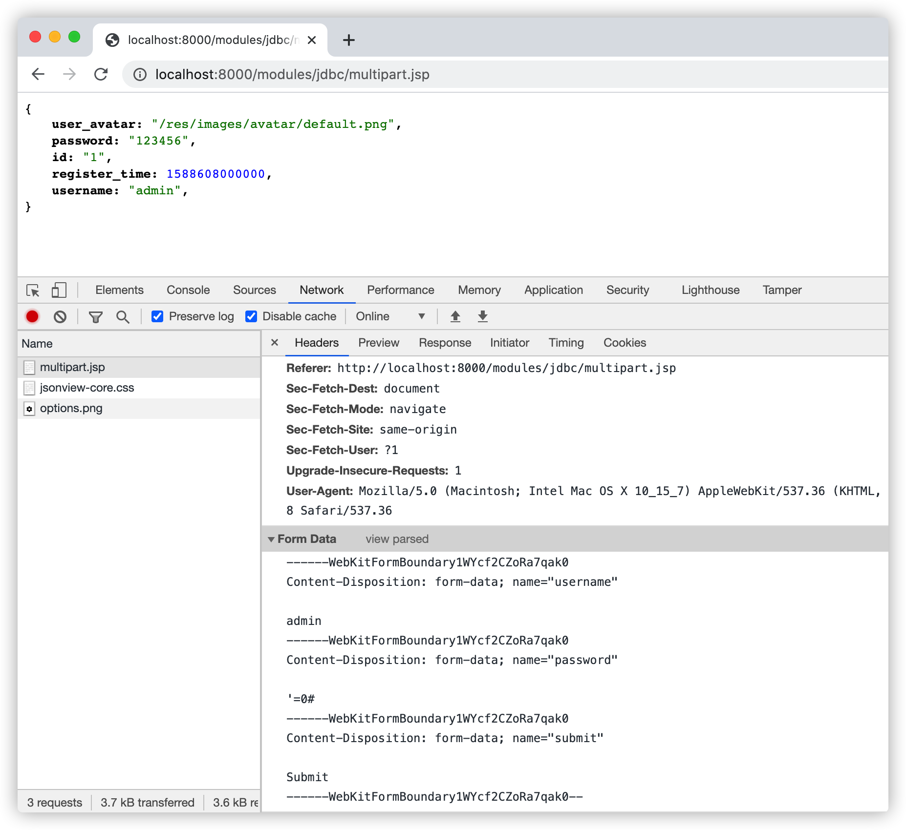 发送Multipart请求,登陆测试Spring MVC:
