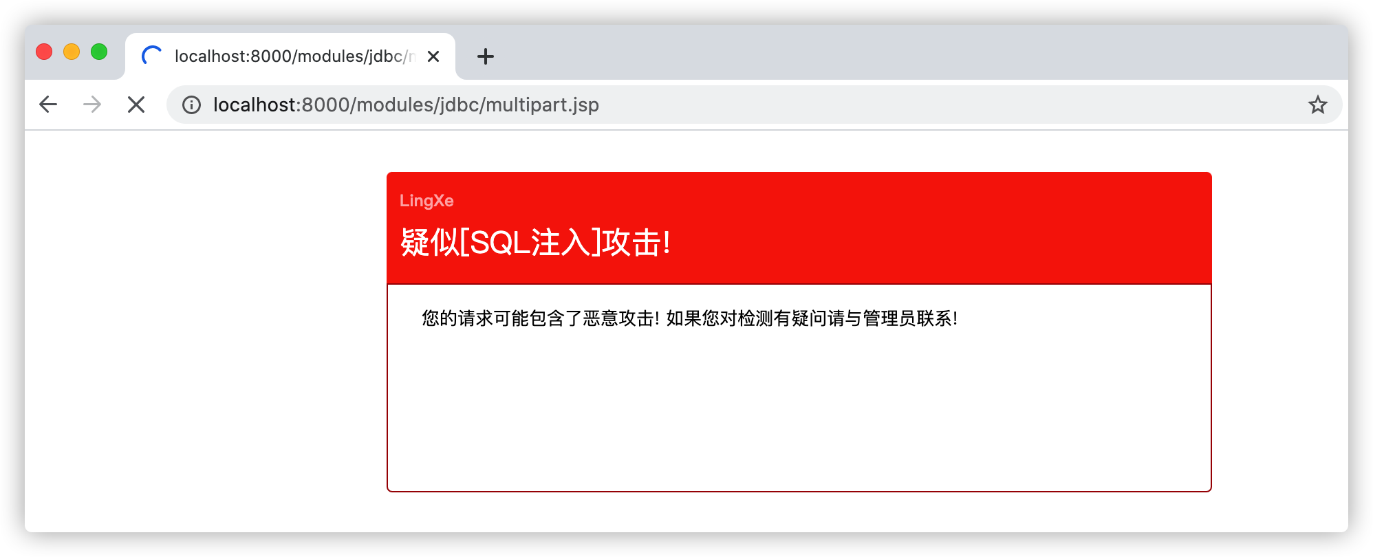 RASP可以识别出参数id中的100001-1会在数据库中做算术运算,因为会被RASP拦截,通常攻击者非常喜欢使用这种方式来探测是否存在SQL注入,传统的WAF因为根本识别这个参数的具体业务含义,从而无法识别此类SQL注入攻击。