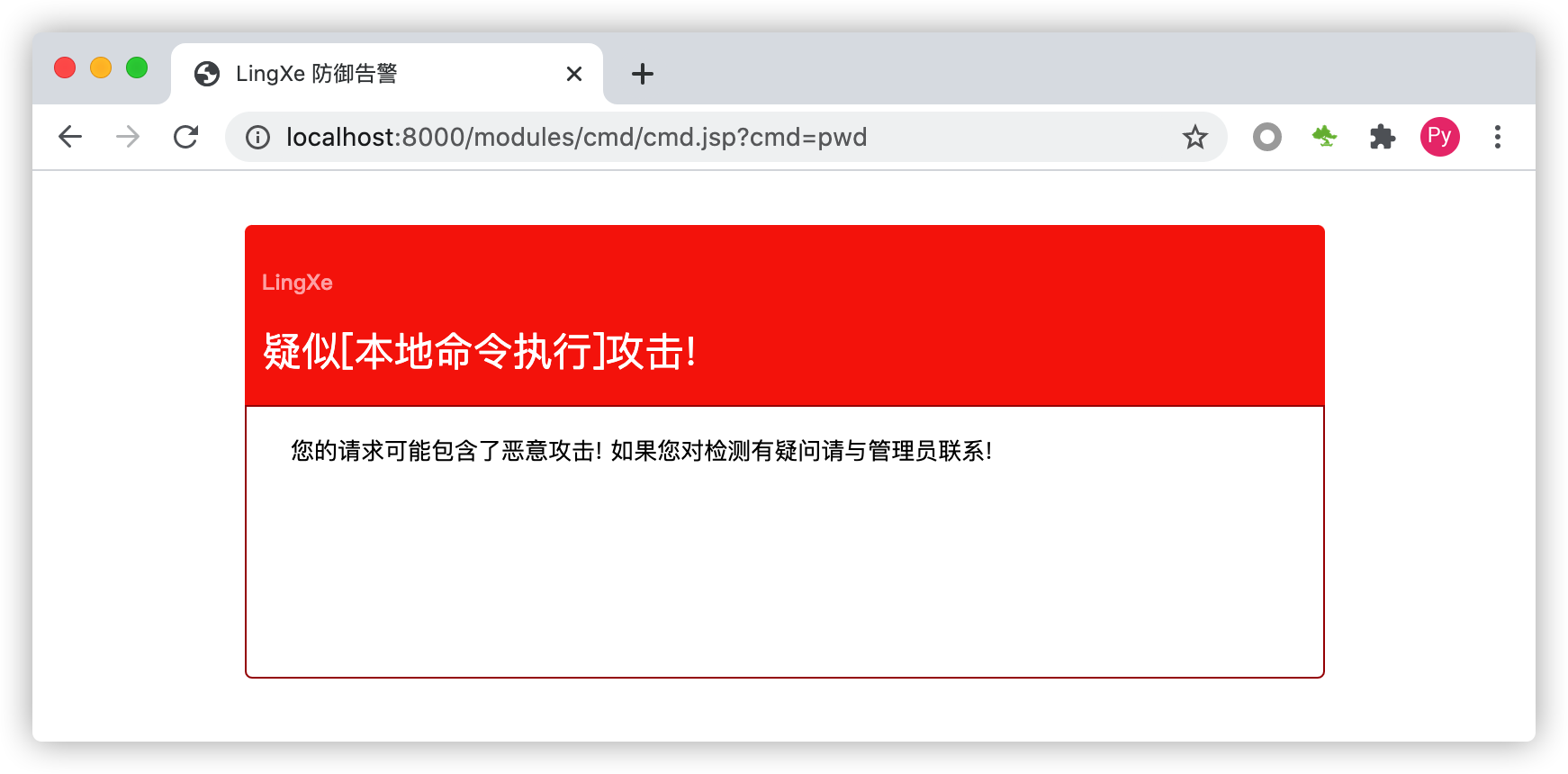 由于传入的cmd参数仅仅是一个两位的英文字母,传统的WAF基本都不具备对该类型的攻击检测,所以如果没有RASP的本地命令执行防御会导致攻击者可以在服务器中执行恶意的命令从而控制服务器。